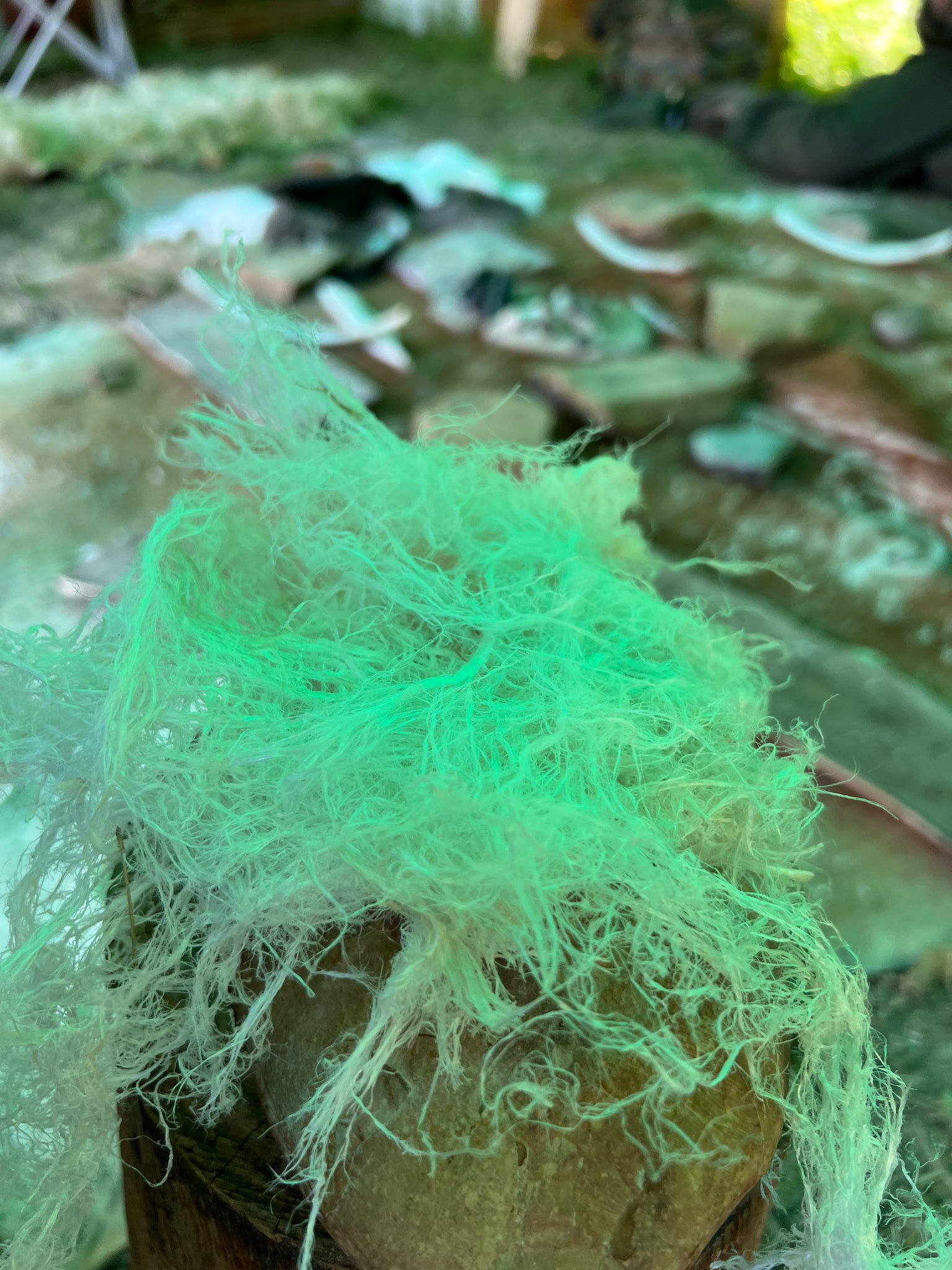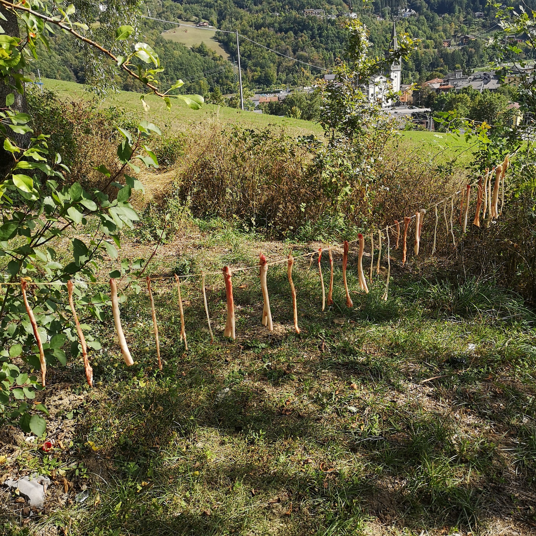 Estrazione e lavorazione dei tendini animali – dall’arto al processo di essiccamento e preparazione, per ottenere fibre naturali estremamente resistenti.