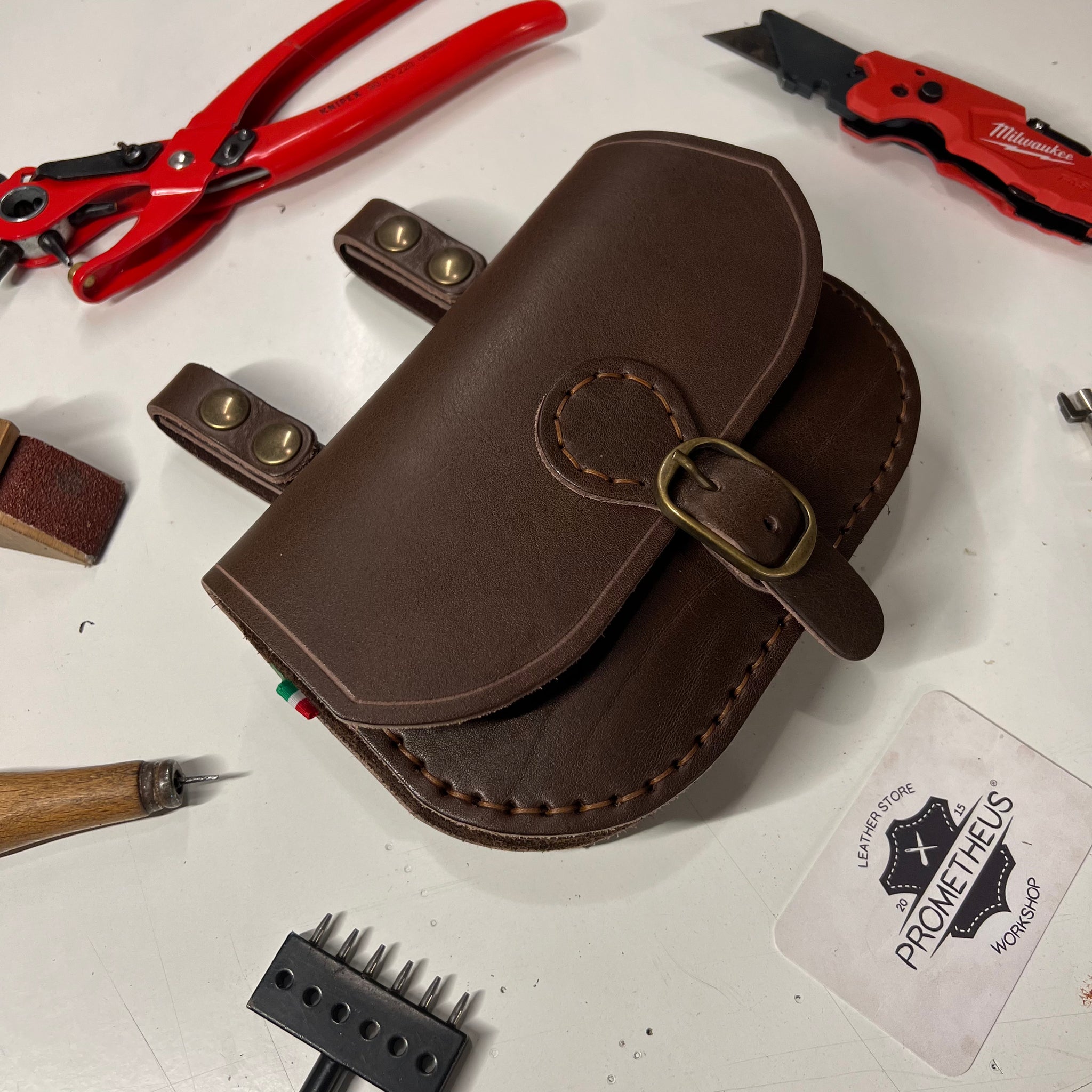 Durante il corso ogni partecipante realizzerĂ una borsa da cintura in cuoio, interamente cucita a mano: